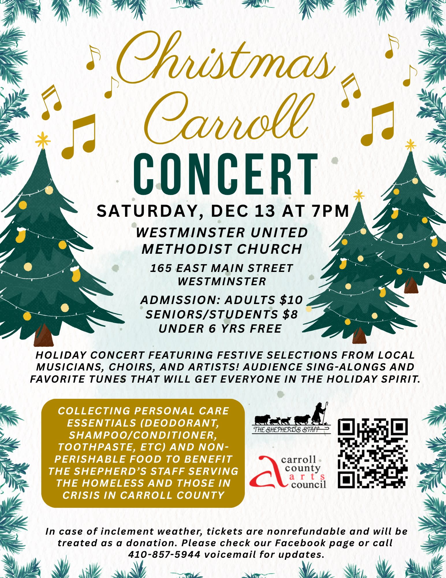Please check our Facebook page or call 410 857-5944 for updates.